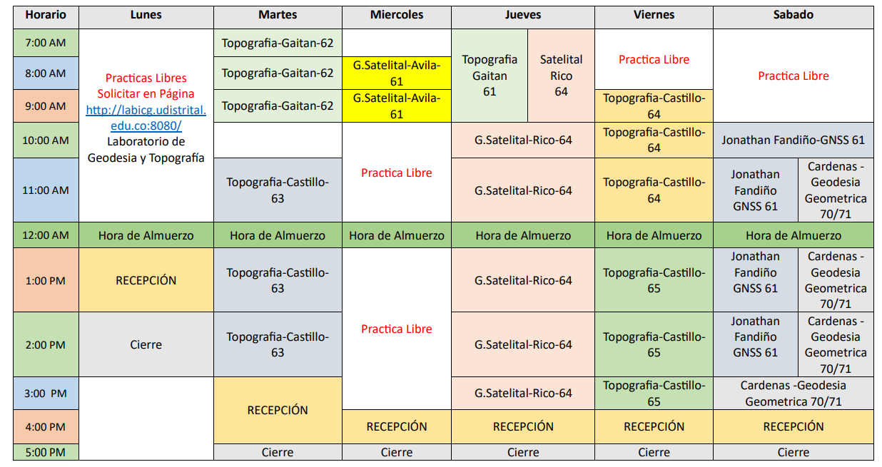 | Espacio fisico temporal: sala de tutoria 449 piso 4, sede Macarena A Nota 1: Se garantizan espacios de práctica libre atraves del formulario (disponible aqui) solo si se reserva el día hábil anterior antes de las 12:00 p. m.; en el caso de solicitudes posteriores seràn atendidos por demanda presencial en el laboratorio. Nota 2: Prioridad en el servicio: A. Prácticas docentes programadas B. Prácticas libres agendadas por formulario C. Práctica libre por demanda en el laboratorio |